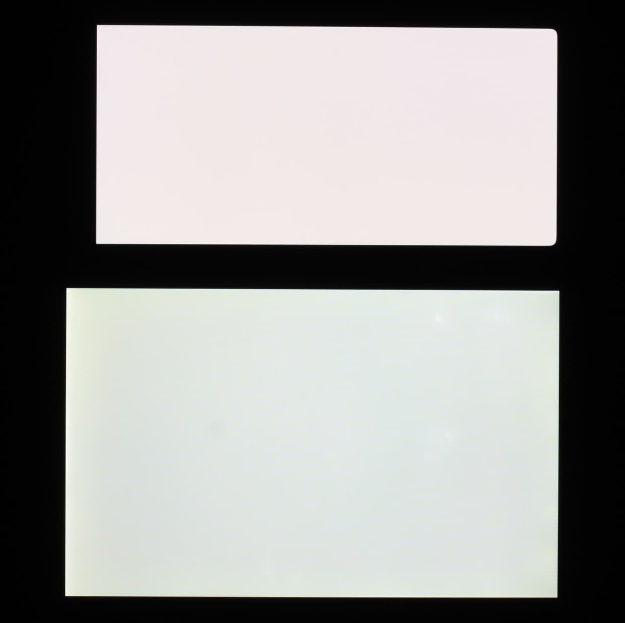 Экран характеризуется великолепными углами обзора. Правда, белый цвет при отклонении даже на небольшие углы поочередно приобретает легкий оттенок одного из цветов радуги, но черный цвет остается просто черным под любыми углами. Он настолько черный, что параметр контрастности в данном случае просто неприменим. Для сравнения приведем фотографии, на которых на экраны Google Pixel 6 и второго участника выведены одинаковые изображения, при этом яркость экранов изначально установлена примерно на 200 кд/м², а цветовой баланс на фотоаппарате принудительно переключен на 6500 К.