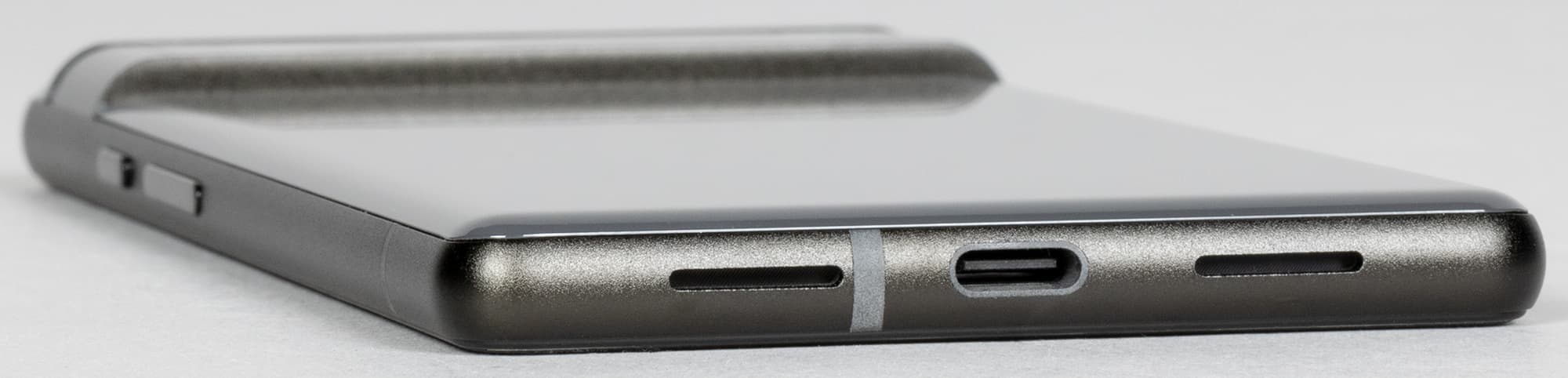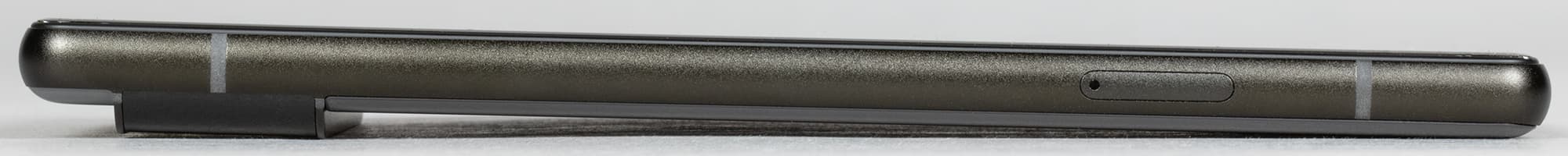 На торце снизу размещены динамик, микрофон и разъем USB Type-C. На верхнем торце нет ничего, кроме дополнительного микрофона. 3,5-миллиметровый аудиовыход для наушников отсутствует.