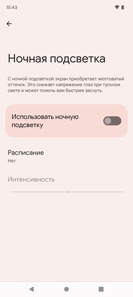 Разумеется, присутствует настройка (Ночная подсветка), позволяющая снизить интенсивность синей компоненты: