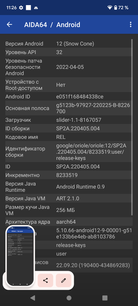- Операционная система Android 12