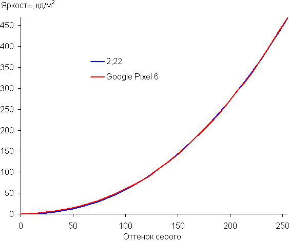 Напомним, что в случае OLED-экранов яркость фрагментов изображения динамично меняется в соответствии с характером выводимого изображения — уменьшается для светлых в целом изображений. В итоге полученная зависимость яркости от оттенка (гамма-кривая), скорее всего, немного не соответствует гамма-кривой статичного изображения, так как измерения проводились при последовательном выводе оттенков серого почти на весь экран.