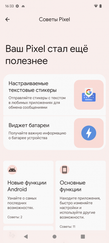 В качестве программной платформы Google Pixel 6 использует актуальную версию ОС Android 12. Как известно, именно «чистой» ОС без сторонних оболочек и лаунчеров отличаются смартфоны этой серии. Кому-то это нравится, кого-то не устраивают возможности кастомизации. В частности, штатная смена уродливых значков прошлого визуального стиля Material Design стала доступна лишь в Android 10 — после исчезновения поддержки сторонних тем еще в Android 7. Оформление в новом визуальном стиле Material You предполагает подстройку цветовой гаммы интерфейса под цвета используемого приложения (в частности, под цвет обоев рабочего стола). Сам интерфейс с его огромными плашками с сильно закругленными краями довольно своеобразен, но этакая однообразность и упорядоченность многим нравится.
