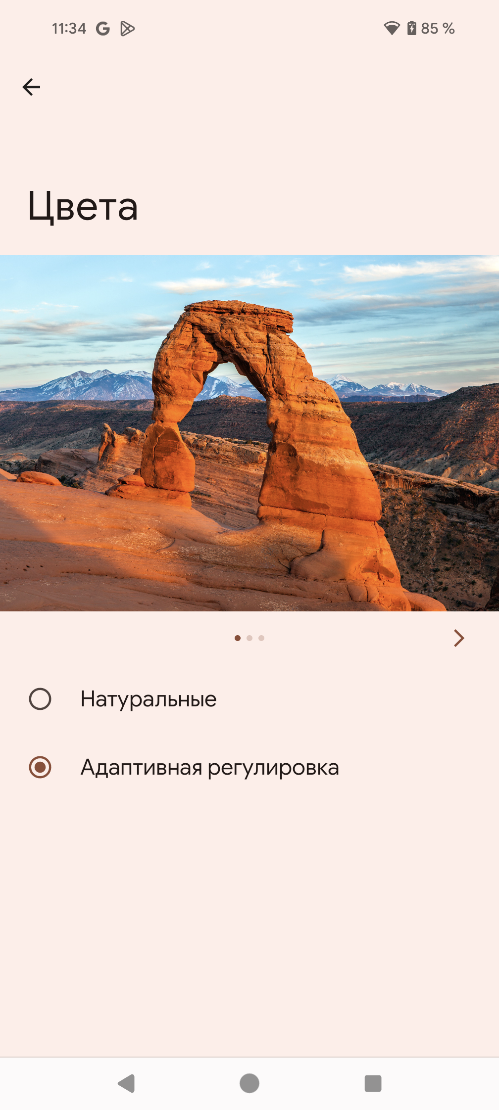 Фотография выше получена при активном профиле Натуральные [цвета] в настройках экрана, всего их два: