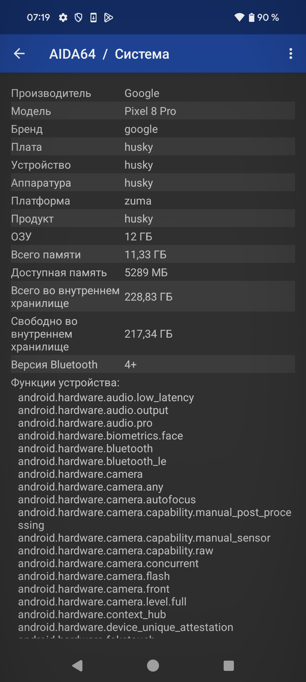 Смартфон Google Pixel 8 Pro оснащен громкими стереодинамиками, выдающими качественный объемный звук. По аудиочасти претензий нет совсем. Есть поддержка Bluetooth 5.3 и всех актуальных профилей для беспроводных наушников — aptX, aptX HD и LDAC. Жаль только, что нет аудиовыхода для качественных проводных наушников.