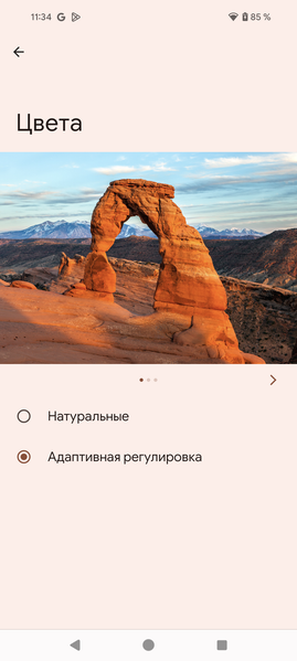 Профиль Адаптивная регулировка (он выбран по умолчанию) отличается слегка увеличенной насыщенностью цветов: