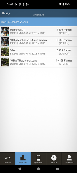 Платформа свежая, выполнена по техпроцессу 4 нм. С ней смартфон набирает в AnTuTu более 700 тысяч баллов, что далеко не рекорд, топовые современные модели Qualcomm Snapdragon старшей серии набирают больше. В целом, в синтетических тестах новая платформа отстает от флагманских решений конкурентов.