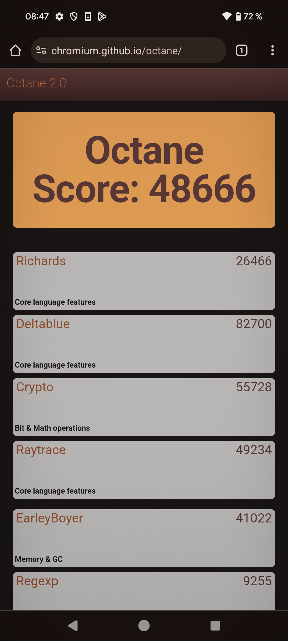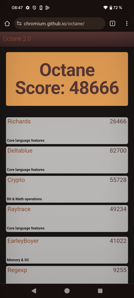 | Google Octane 2 (больше — лучше) | 48666 | 59248 | 44195 | 31527 | 19057 |