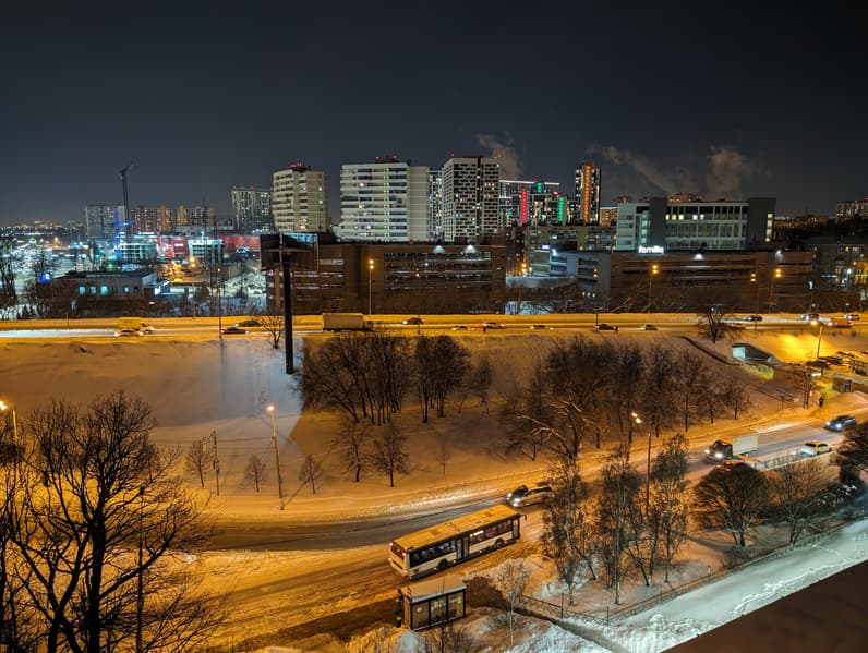 Даже в условиях не самой яркой московской зимы смартфон продемонстрировал высочайшее качество съемки на основную камеру, с широким динамическим диапазоном, максимальной детализацией, ровной геометрией и абсолютно натуральной цветопередачей. Это точно один из лучших фотофлагманов на мировом рынке на текущий момент, а по нашему мнению — даже лучший из них. Такой обработки нет больше ни у кого.