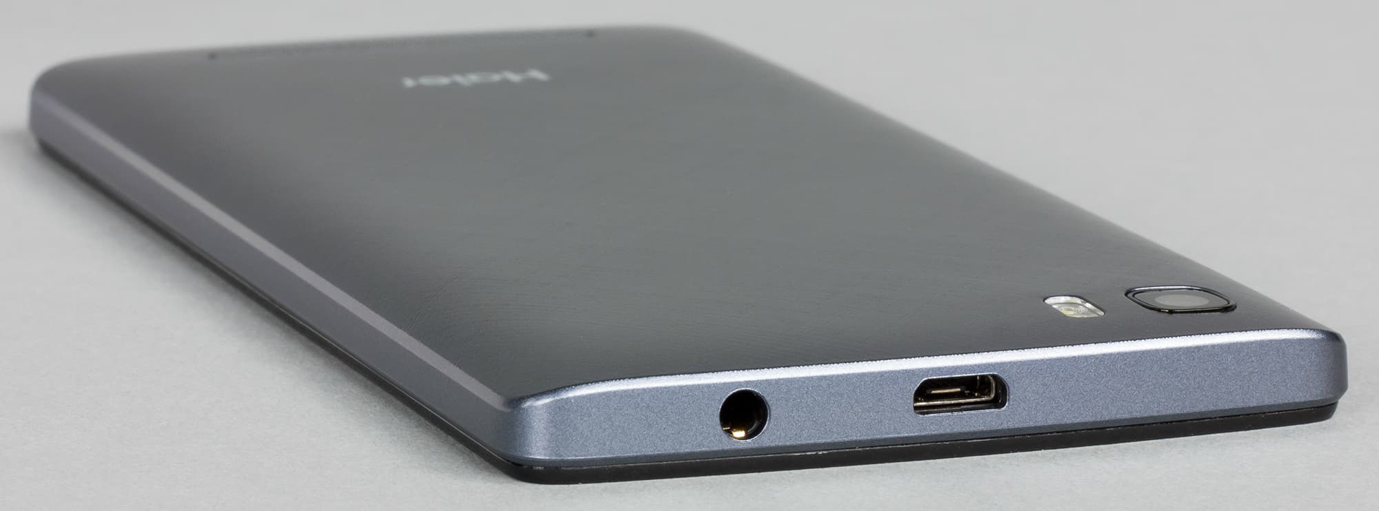 Оба интерфейсных разъема, выход 3,5 мм на наушники и Micro-USB, вынесены на верхний торец. Micro-USB поддерживает подключение внешних устройств в режиме USB OTG. Отверстия второго, вспомогательного микрофона на корпусе не наблюдается, так что, скорее всего, системы шумоподавления здесь нет.