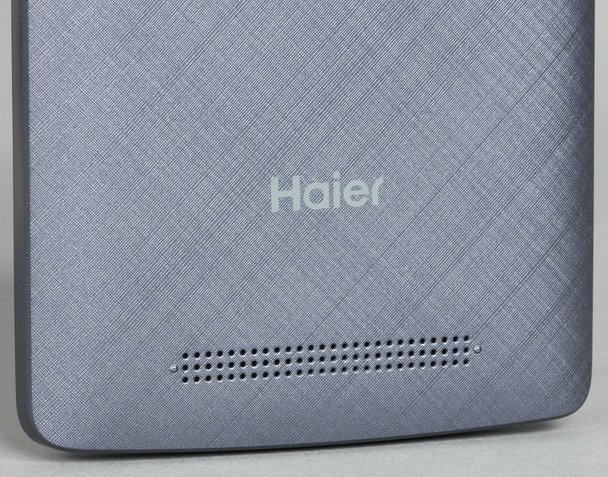 Выпускается Haier T54P только в одном варианте окраса, это серый с металлическим блеском пластик с шероховатой текстурированностью под ткань. Сочетание довольно странное, поскольку краска типа серый металлик чаще используется при попытке имитировать металл, но «тряпичный» рисунок текстур здесь категорически отметает любой намек на металлическую поверхность.