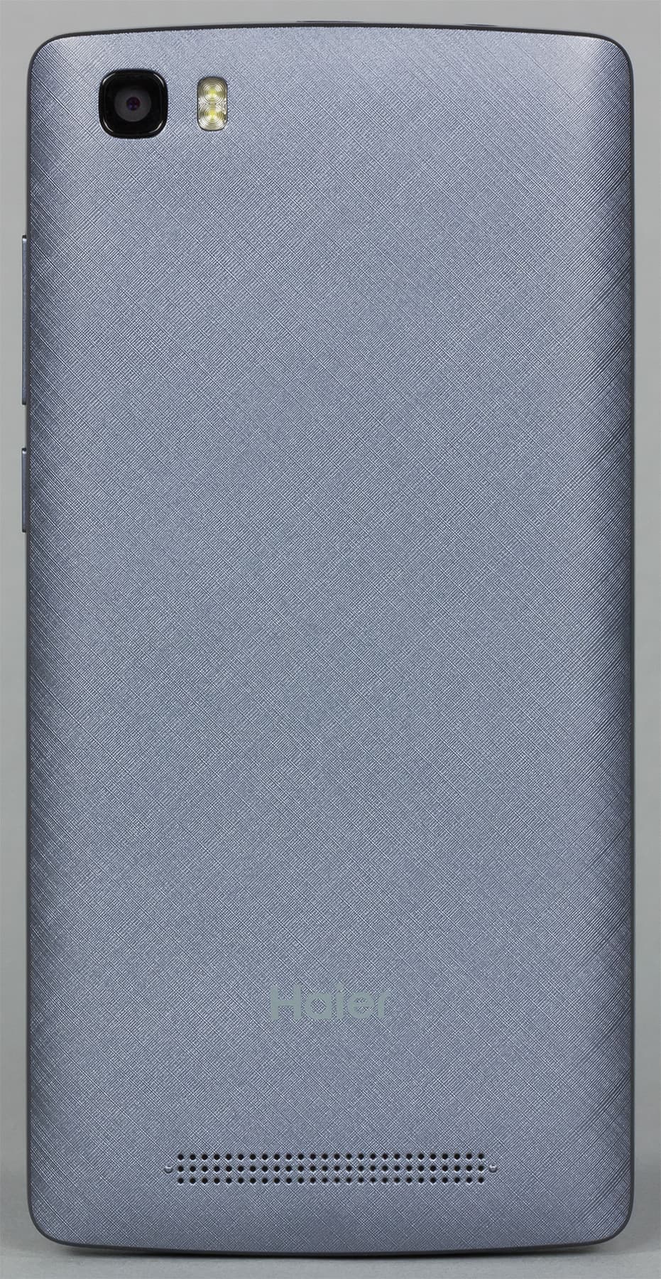 Haier T54P получил самый простой, не очень выразительный дизайн, но вместе с тем аппарат вполне симпатичный, спокойный и аккуратный. Сразу видно, что смартфон принадлежит к недорогому ценовому сегменту. Корпус полностью выполнен из твердого пластика с шероховатой текстурированностью задней поверхности. Крышка накрывает собой весь остов телефона вместе с боковинами, она крепко удерживается на корпусе, не люфтит и даже не поскрипывает, корпус монолитен.