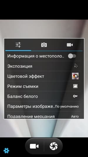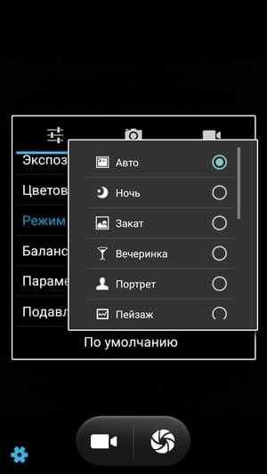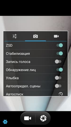 Меню управления здесь стандартное, хорошо знакомое по множеству китайских аппаратов на платформе MediaTek. Оно простое по виду и строению. Вручную можно устанавливать экспозицию, светочувствительность (до ISO 1600), баланс белого, яркость, контрастность, насыщенность, есть шкала экспокоррекции. Можно выбирать сюжетные режимы, есть режим HDR, функции обнаружения лиц, улыбки и возможность съемки по жесту.