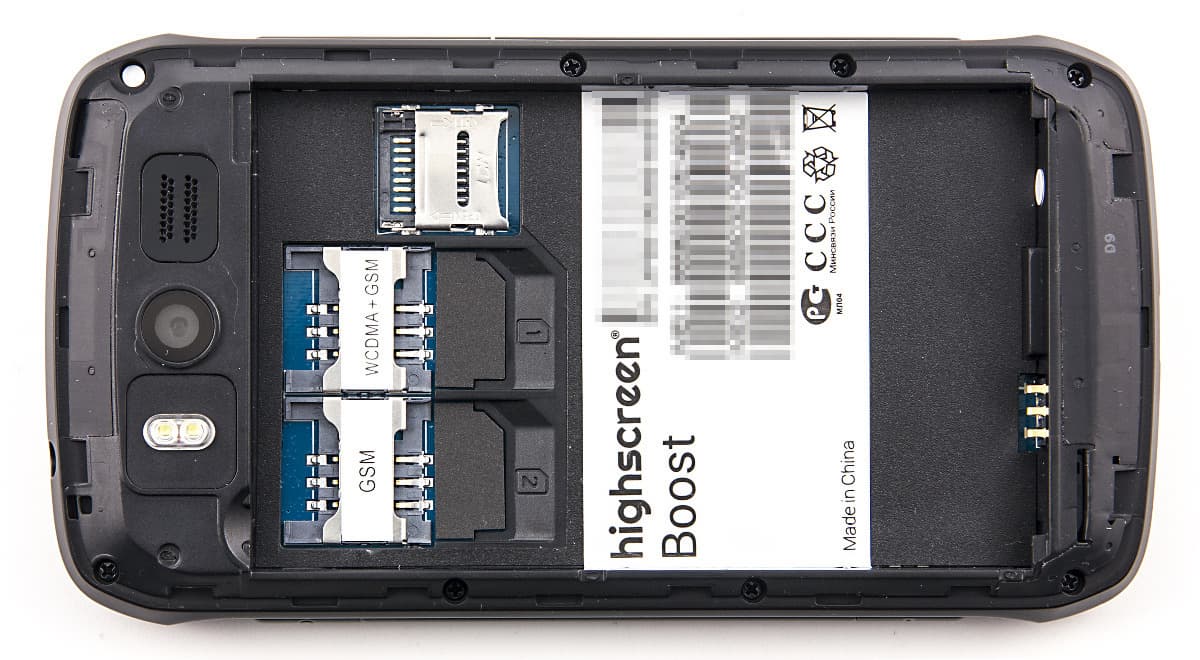 Как и со многими другими недорогими устройствами, в Highscreen Boost можно использовать две SIM-карты формата Mini-SIM. Первая способна работать в сетях 3G, а вторая ограничена сетями прошлого поколения. Радиоблок в модели только один, так что при использовании одной из карт вторая будет недоступна (стандартное решение в бюджетном сегменте). Про максимальные скорости для передачи данных производитель ничего не сообщает. В тестировании устройство обеспечивало вполне комфортные условия для использования мобильного интернета.
