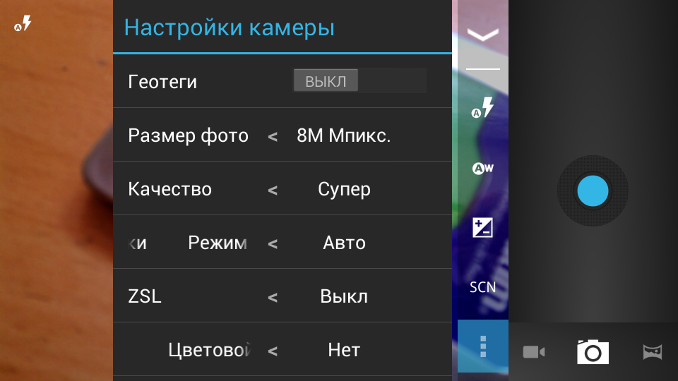Камеры в недорогих устройствах редко выделяются чем-то интересным. Не стал исключением и рассматриваемый в этой статье смартфон. По заявлению производителя, задняя камера имеет формальные 8 Мп, автофокус и светодиодную вспышку, а передняя может похвастаться 1 Мп. На самом деле разрешение все-таки поменьше — максимальные размеры кадров составляют 3200×2400 и 1024×768 точек соответственно. Для управления камерами используется стандартная программа Android. На корпусе устройства есть выделенная кнопка для камеры, поддерживающая двойное нажатие для фокусировки и съемки, но из-за симметричной формы корпуса пользоваться ею не очень удобно, т. к. можно легко перепутать ее с кнопкой выключения питания или громкости. Кроме того, она работает только при разблокированном состоянии телефона.