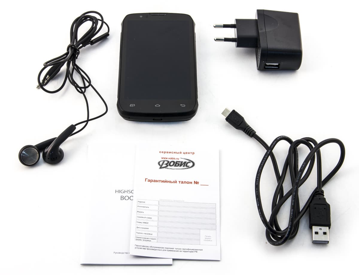 Комплект поставки не отличается от других массовых устройств: телефон, батарея (4160 мА·ч), зарядное устройство (5 В 1 А) с USB-выходом, кабель Micro-USB для зарядки и синхронизации, простая стереогарнитура с микрофоном и одной кнопкой, достаточно неплохое руководство пользователя, которое может пригодиться начинающим, и гарантийный талон.