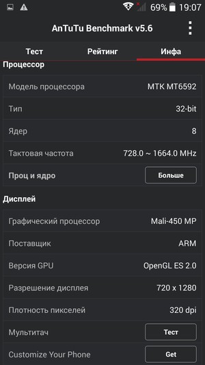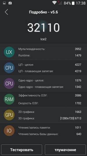 По результатам тестирования платформа показала весьма неплохие результаты, производительность у смартфона выше среднего (около 30К в AnTuTu v 5.x). Добавить здесь особенно нечего, восьмиядерная SoC MediaTek MT6592 уже давно и прочно обосновалась на рынке, она хорошо уже нами изучена на примере множества аппаратов, протестированных за прошедший год. Рекордов по производительности она никогда не била и уже не побьет, но и смартфоны на ее основе не слишком дороги. На смену ей постепенно будет приходить новая MT6595, некоторые из таких устройств мы уже исследовали. Новая платформа превосходит свою предшественницу столь значительно, что сравнивать их просто бессмысленно. Удел SoC MediaTek MT6592 — средний и дальше по нисходящей уровни, но никак не топовый и не флагманский. Тем не менее, описываемый сегодня смартфон достаточно мощный, производительности восьмиядерной платформы еще долго будет хватать для выполнения большинства задач.