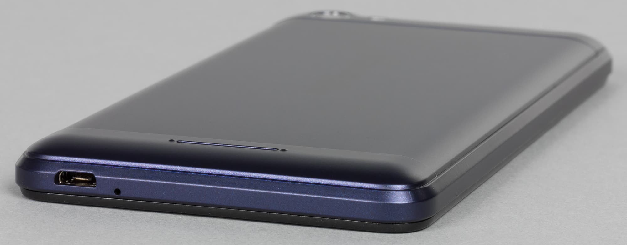 На верхнем торце установлен выход 3,5 мм на наушники, в нижний врезан разъем Micro-USB, поддерживающий подключение внешних устройств в режиме USB OTG.
