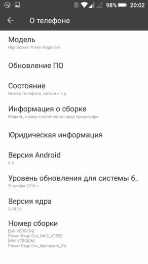 В качестве программной платформы в Highscreen Power Rage Evo используется Google Android версии 6.0, есть возможность обновления по воздуху (ОТА). Альтернативного интерфейса, как такового, нет, интерфейс воспроизводит стоковую ОС Android. Единственное изменение — это меню настроек: все главные настройки вынесены в отдельный раздел, как в интерфейсе у смартфонов Huawei. Информацию о хранилище, памяти, местоположении, учетной записи и пр. нужно искать именно в подразделе расширенных настроек. Здесь же добавили раздел по работе с жестами: перевороты корпуса, рисование символов на экране, реакция автояркости на глаза пользователя (с помощью камеры), активация двойным постукиванием по экрану — все это тут есть. Есть и возможность включить знакомую виртуальную кнопку — круговое меню с возможностью вызова наиболее важных функций, прикрепляемое к любому месту на экране. Дополнительных программ, кроме файлового менеджера, в смартфоне нет.