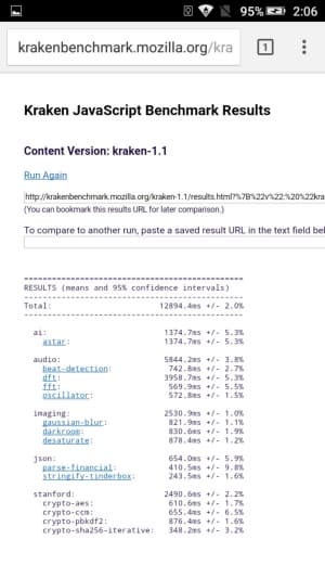 | Mozilla Kraken (мс, меньше — лучше) | 12894 | 14313 | 14587 | 11250 | 9259 |
