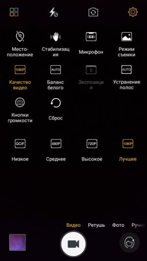 Основная камера оснащена 13-мегапиксельным модулем и объективом с диафрагмой f/2,2, с довольно быстрым автофокусом, без функции стабилизации для фотосъемки. Вспышка весьма яркая. Меню управления здесь не стандартное для платформы MediaTek, а свое собственное, и очень удобное своей наглядностью. Настройки оформлены в виде матрицы из квадратиков и одновременно отображаются на экране в виде полупрозрачной подложки на фоне видоискателя. Есть режим ручных настроек с несколькими концентрическими ползунками для выбора и настройки выдержки, светочувствительности (до ISO 1600), баланса белого. Есть дополнительные режимы: ночной, панорамный, HDR, есть даже возможность делать таймлапс, сканировать QR-коды и работать с текстом. Передавать управление настройками камеры сторонним приложениям с помощью Camera2 API нельзя, возможности записи снимков в RAW тоже нет.