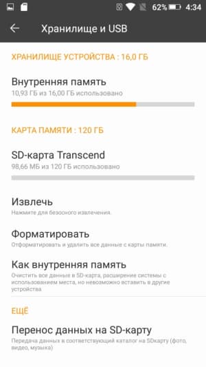 Есть возможность установки карт microSD, и для этого не придется изымать одну из SIM-карт. На практике наша проверочная карта Transcend Premium microSDXC UHS-1 объемом 128 ГБ уверенно распозналась устройством. Можно отформатировать карту памяти так, чтобы устанавливать на нее приложения.