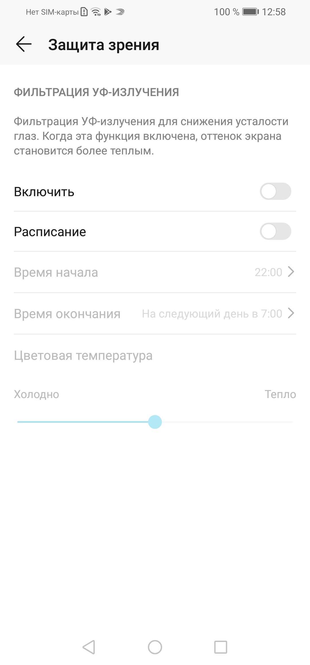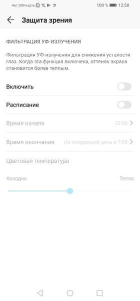 Присутствует настройка, позволяющая уменьшить интенсивность синей компоненты.