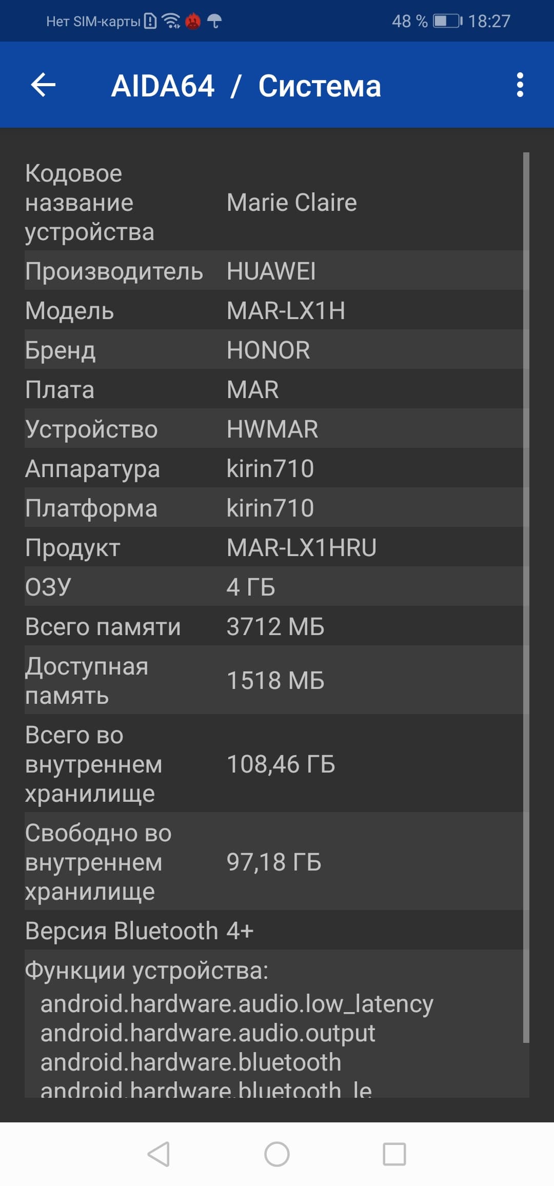 Основные характеристики Honor 20 Lite (модель MAR-LX1H)