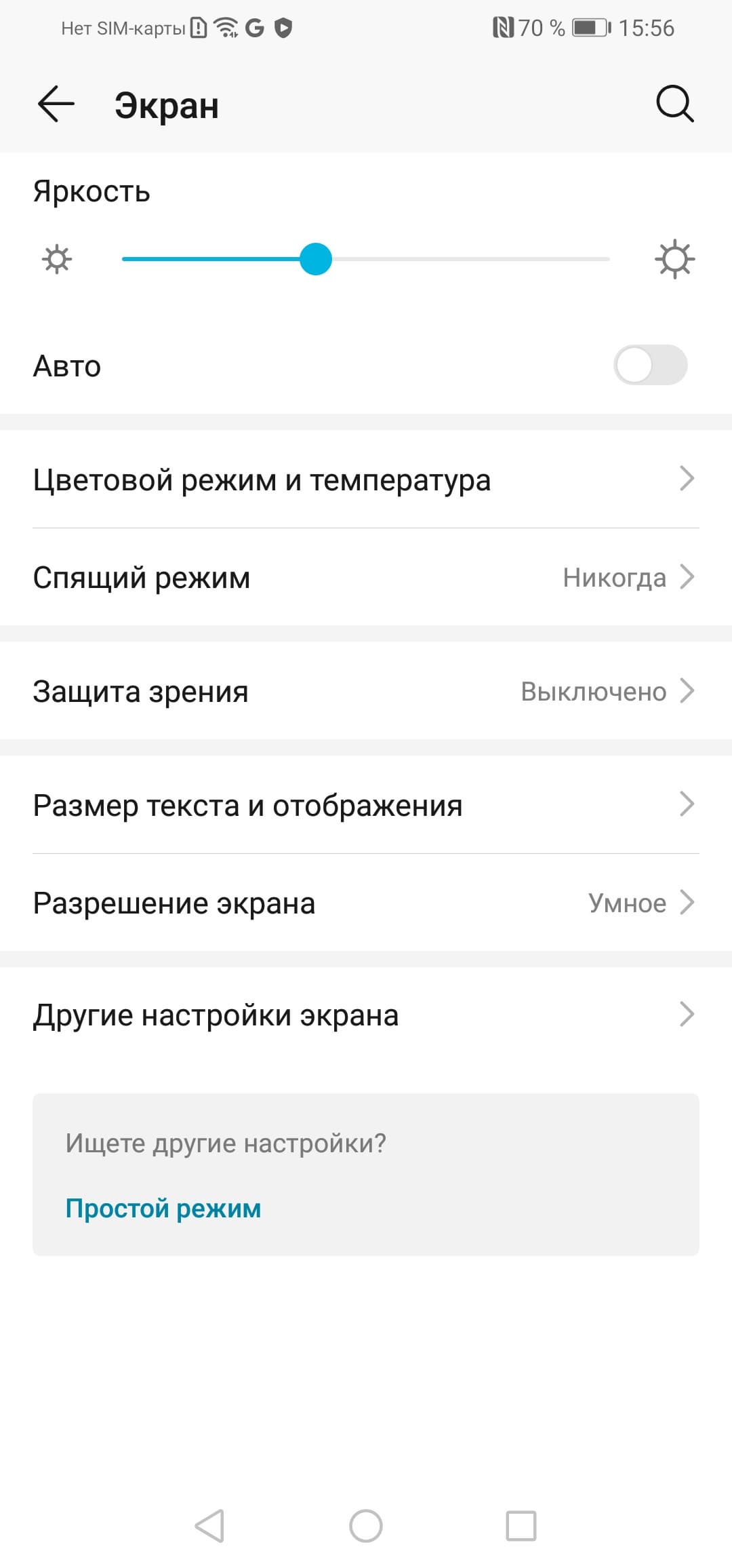 При выводе белого поля во весь экран и при ручном управлении яркостью ее максимальное значение составило 480 кд/м² в обычных условиях, а на очень ярком свету оно повышается до 530 кд/м². Максимальная яркость очень высокая, поэтому, учитывая отличные антибликовые свойства, читаемость экрана даже в солнечный день вне помещения должна быть на хорошем уровне. Минимальное значение яркости — 1 кд/м². В полной темноте яркость можно понизить до комфортного значения. В наличии автоматическая регулировка яркости по датчику освещенности (он находится правее выреза фронтального громкоговорителя на верхнем крае фронтальной панели). В автоматическом режиме при изменении внешних условий освещенности яркость экрана как повышается, так и понижается. Работа этой функции зависит от положения ползунка регулировки яркости: им пользователь может попытаться выставить желаемый уровень яркости в текущих условиях. Если не вмешиваться, то в полной темноте функция автояркости уменьшает яркость до 4 кд/м² (темновато), в условиях освещенного искусственным светом офиса (примерно 550 лк) устанавливает на 160 кд/м² (нормально), в очень ярком окружении (соответствует освещению ясным днем вне помещения, но без прямого солнечного света — 20000 лк или немного больше) повышает до 530 кд/м² (что и нужно). Уровень яркости подсветки зависит от положения ползунка в темноте и в средних условиях, а в очень ярком окружении всегда устанавливается максимум. Результат по умолчанию нас не удовлетворил, поэтому мы подвинули ползунок чуть вправо в условиях полной темноты и для трех условий, указанных выше, получили 13, 160 и 530 кд/м² (идеальное сочетание). Получается, что функция автоподстройки яркости работает адекватно и позволяет пользователю настраивать свою работу под индивидуальные требования. На любом уровне яркости значимая модуляция подсветки отсутствует, поэтому нет и никакого мерцания экрана.