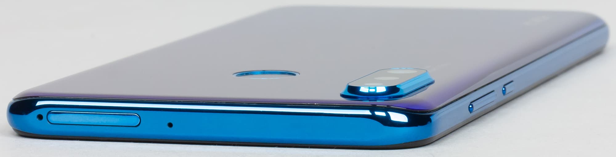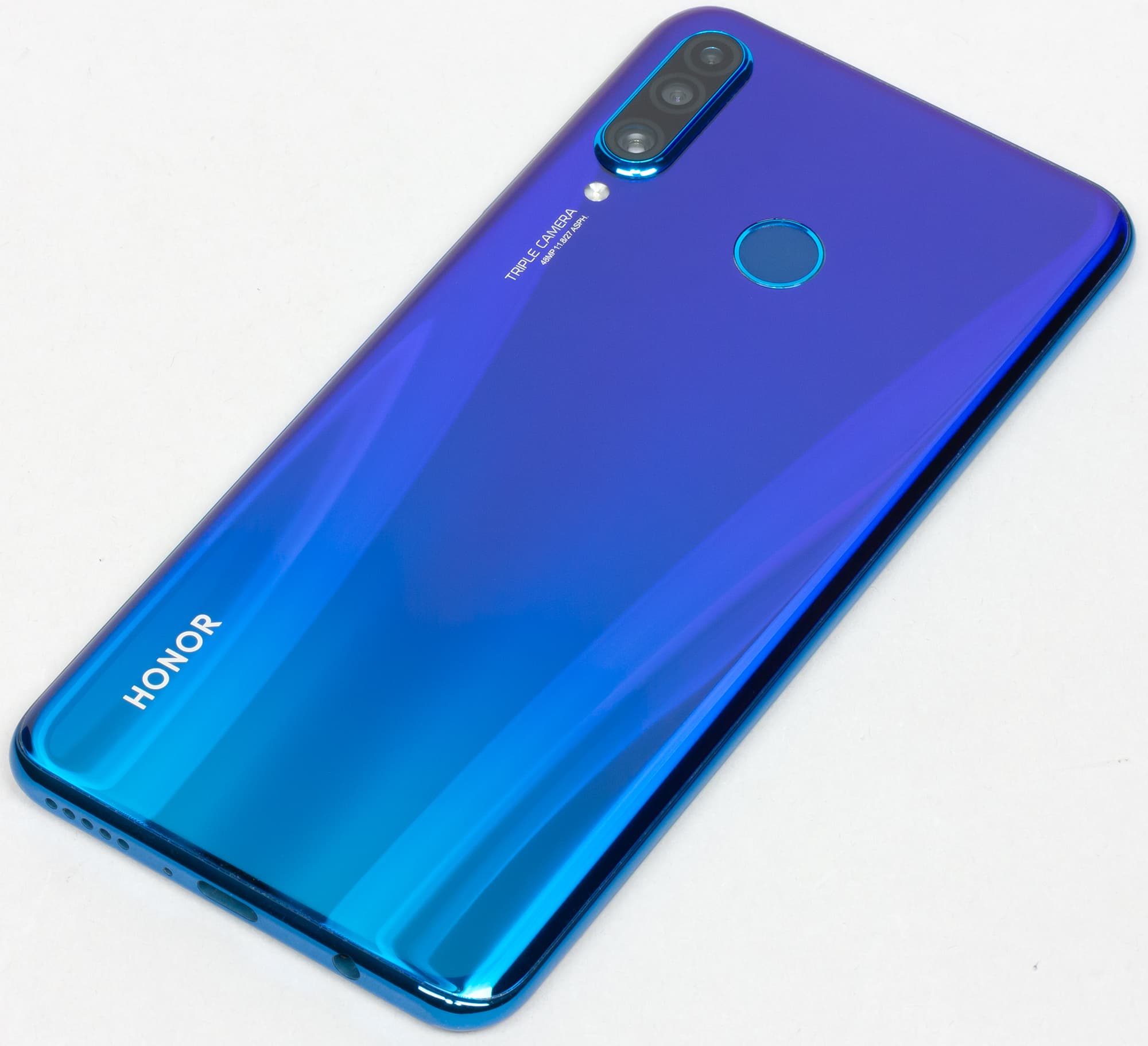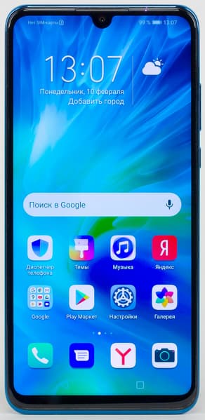 Honor 20 Lite предлагается в России в нескольких цветах: черном, белом, синем и фиолетовом. Последние два имеют градиентный перелив. Защиты от пыли и влаги корпус смартфона не получил.