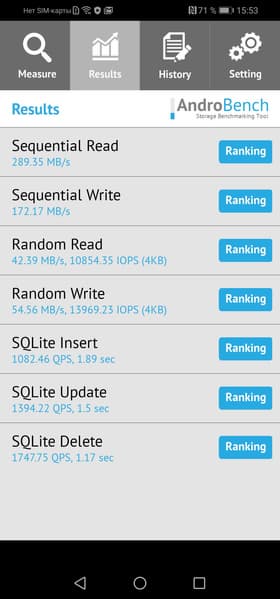 Результаты теста AndroBench на скорость работы с памятью: