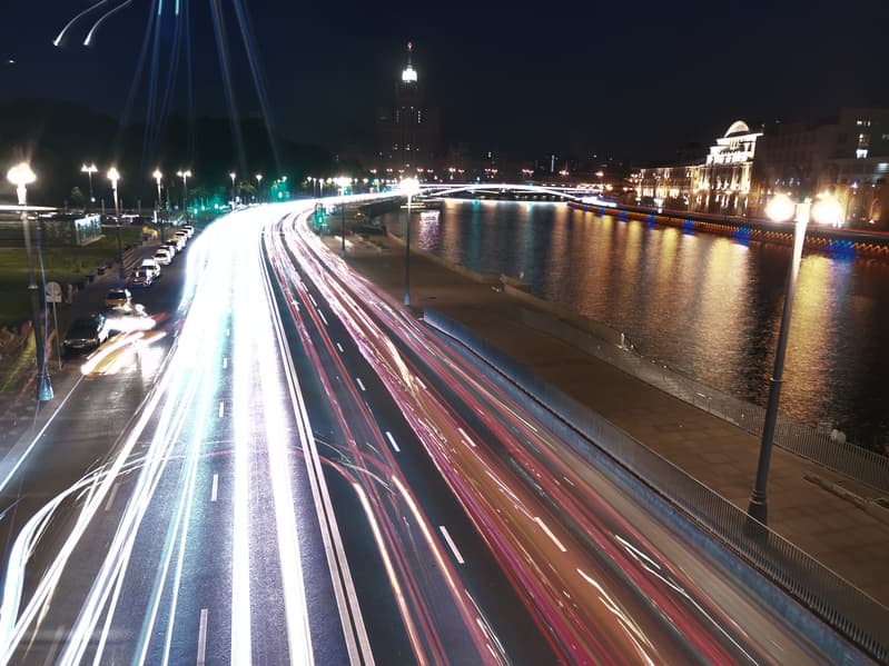 Но и здесь тоже есть нюанс: вот конкретно в этом режиме фотографировать с рук почти невозможно. Кадр выше появился только благодаря тому, что телефон удалось зафиксировать вплотную прислонив к стеклу моста над дорогой. Разумеется, такие удобные подручные средства есть далеко не всегда и далеко не везде. Если же снимать с рук, то на кадре неизбежно появляется «смаз», вот такой: