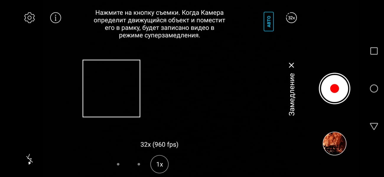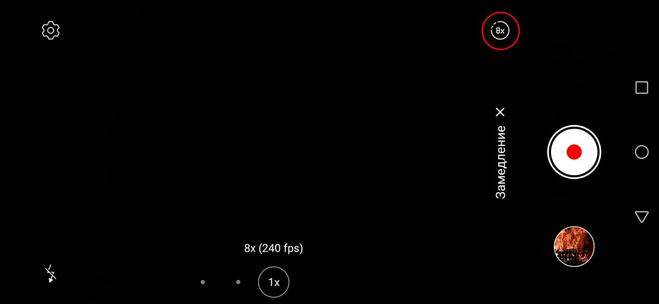 Переключаться между, скажем так, степенями замедления можно и при помощи удобных пиктограмм «х4», «х8, «х32» в интерфейсе приложения «Камера»
