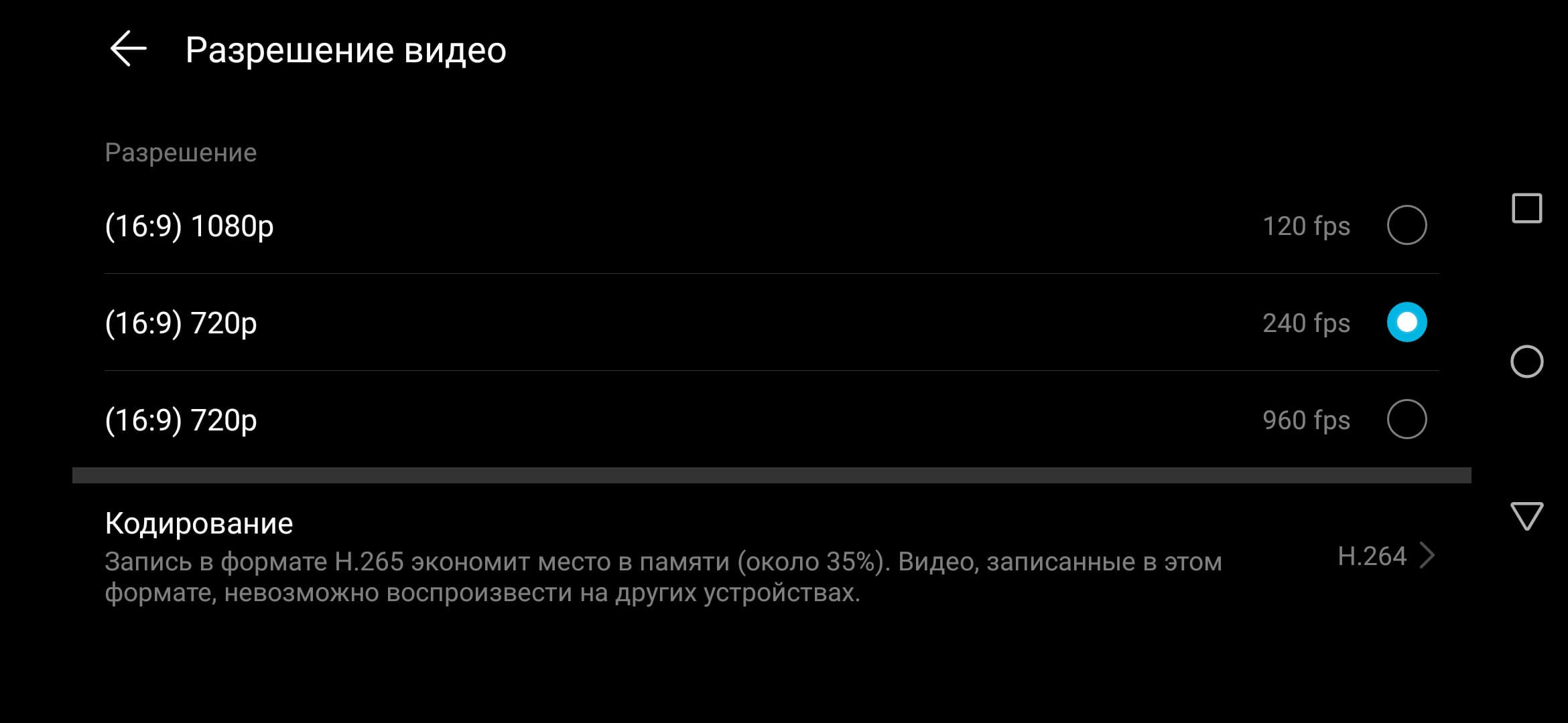 В настройках можно выбрать три варианта скорости съёмки: 120, 240 или 960 кадров в секунду.