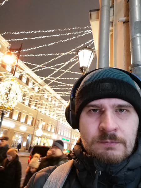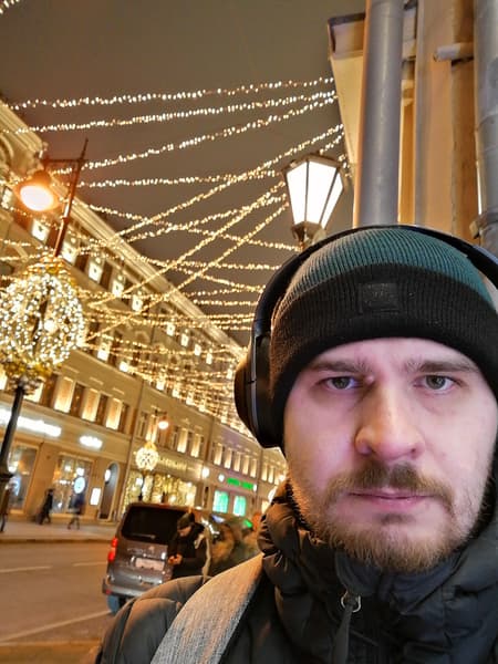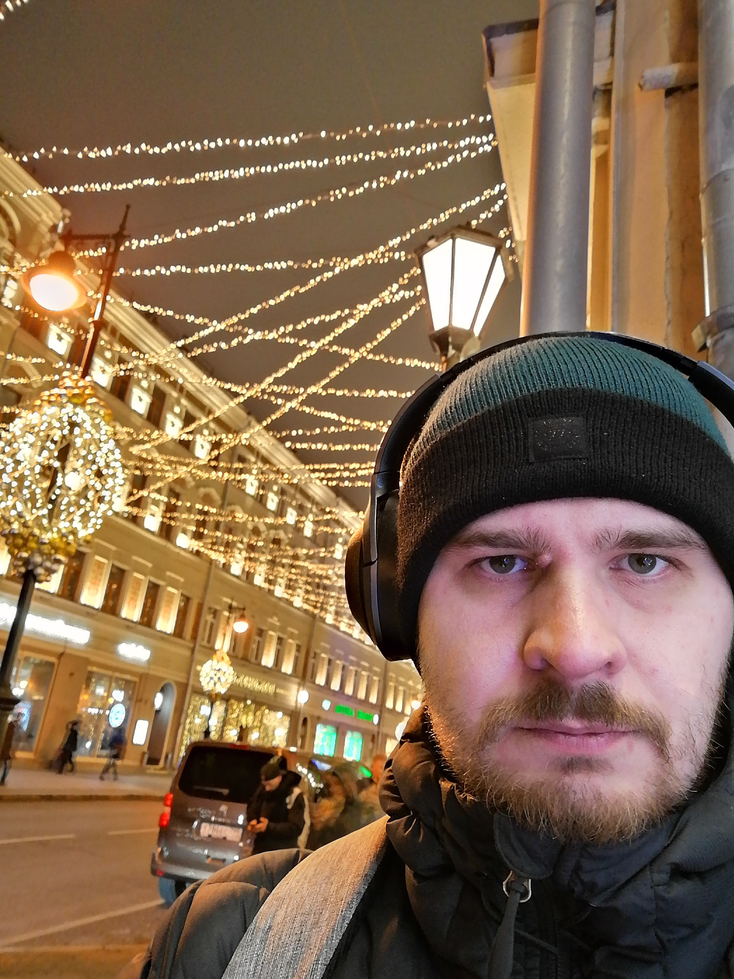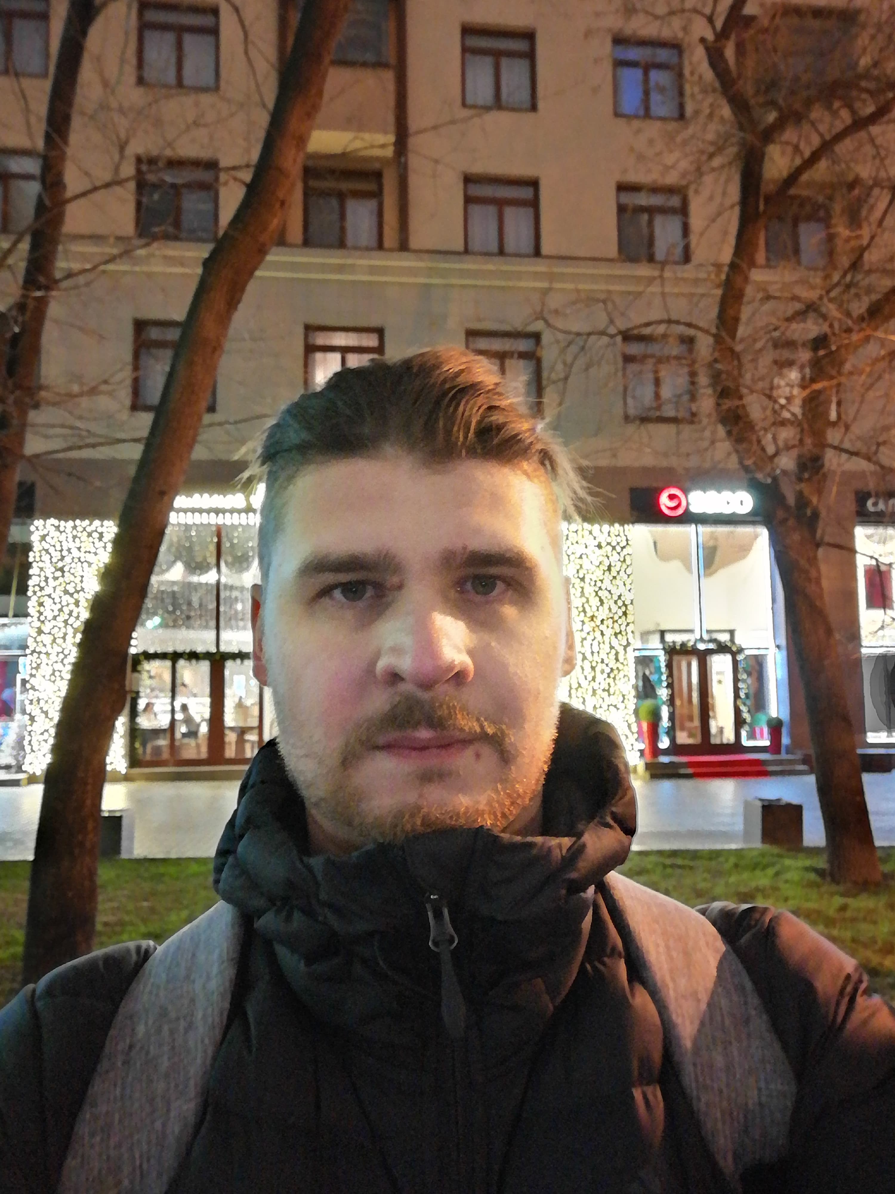 А теперь селфи в обычно и ночном режиме. Напомню, Honor 20S — единственная модель в ассортименте бренда, имеющая поддержку ночного режима не только для основной камеры, но и для фронтальной. В обычном режиме смартфоны пасуют при ночной съёмке селфи, если на фоне оказываются слишком яркие объекты. Пытаясь сделать светлее лицо, они пересвечивают фон. Искусственный интеллект Honor 20S определяет, где в кадре лицо человека, и обрабатывает его отдельно.