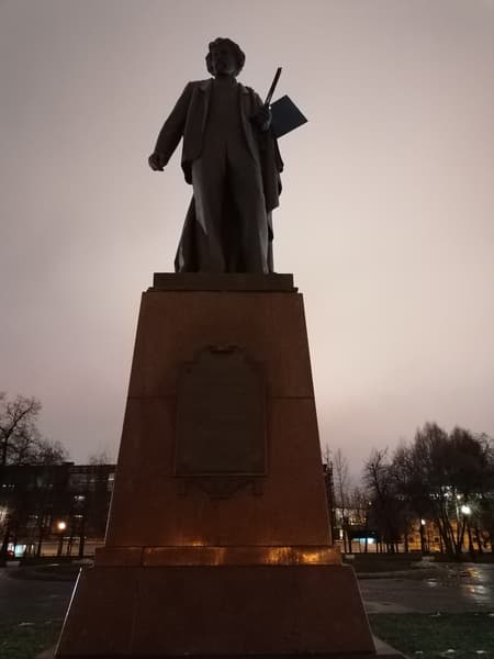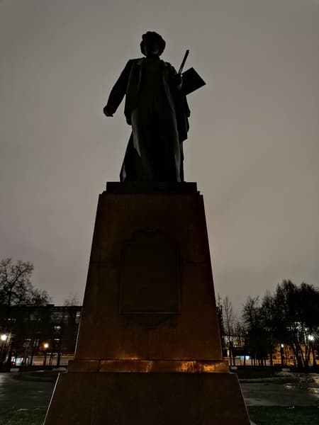 Снимая памятник, мы проверили ещё и работу режима HDR. С ним фотография получилась намного светлее, чем в прочих, но детали смазались. Ночной режим дал самый резкий кадр, но сам памятник вышел тёмным.