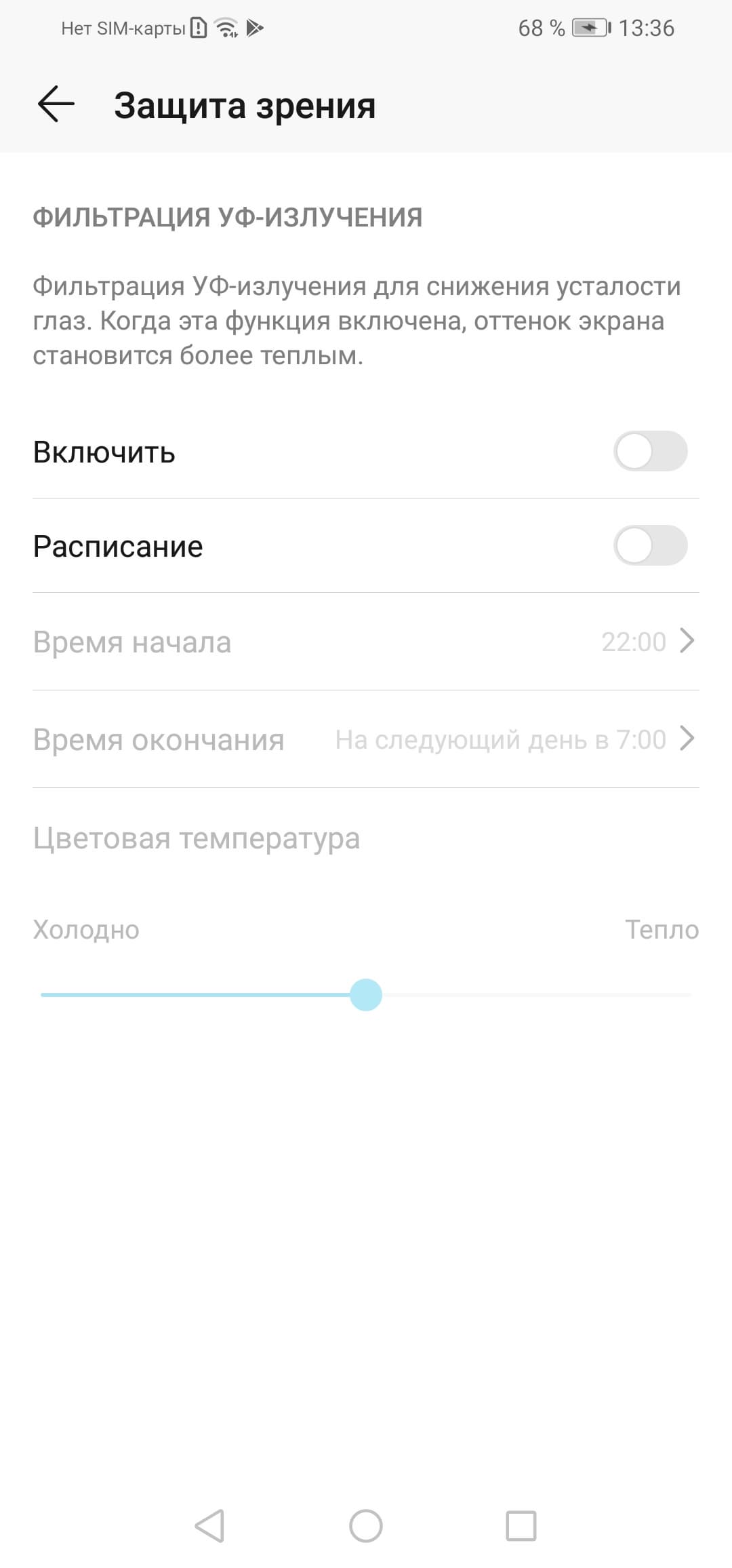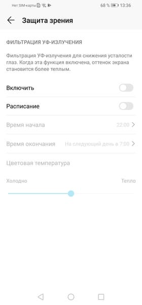 Присутствует модная настройка, позволяющая снизить интенсивность синей компоненты.
