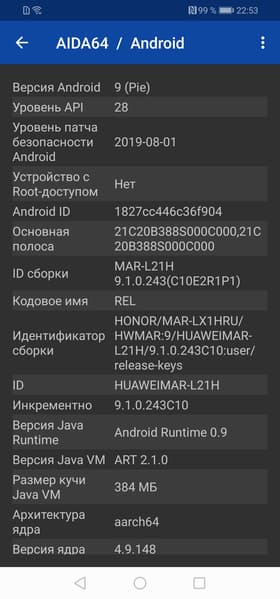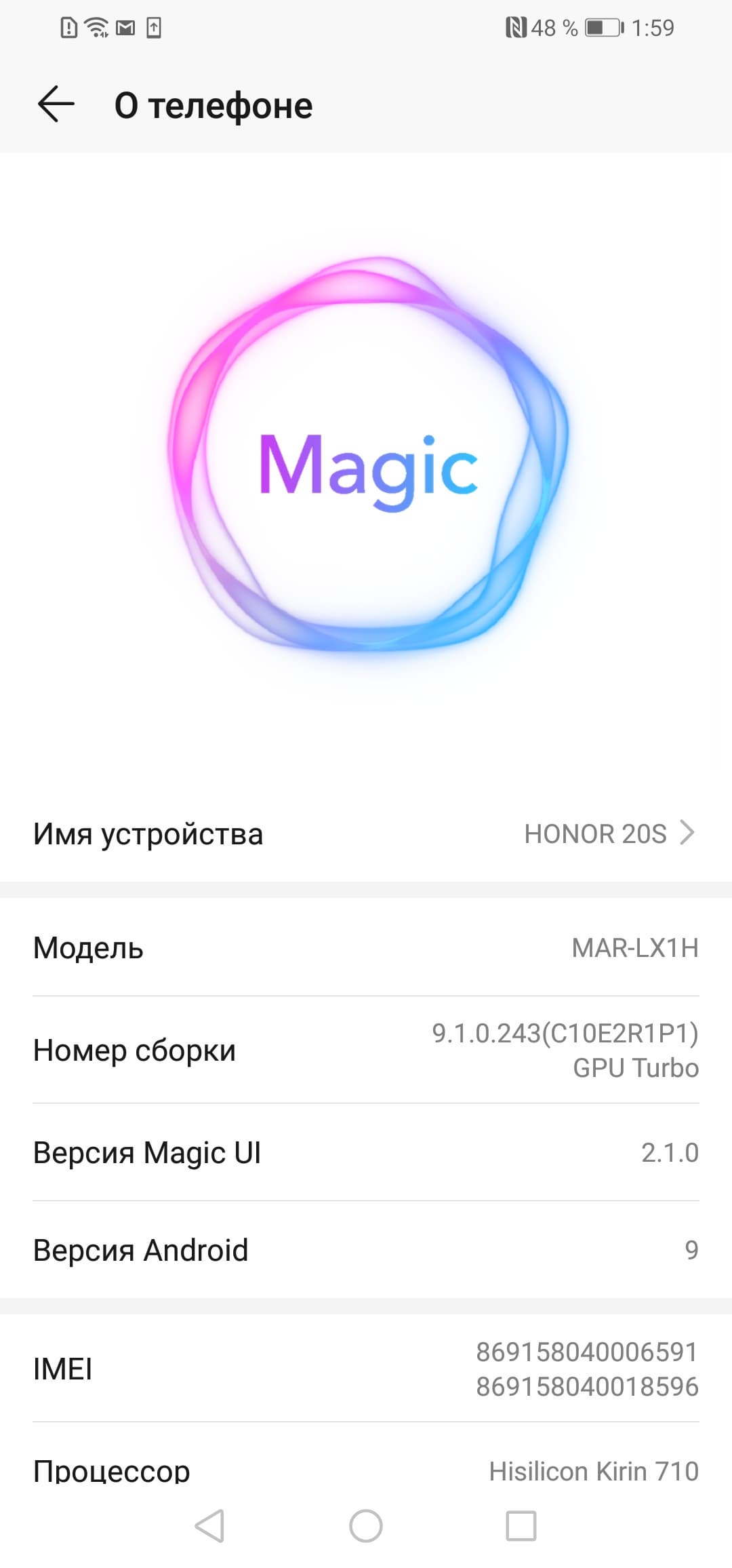 Основные характеристики Honor 20S (модель MAR-LX1H)