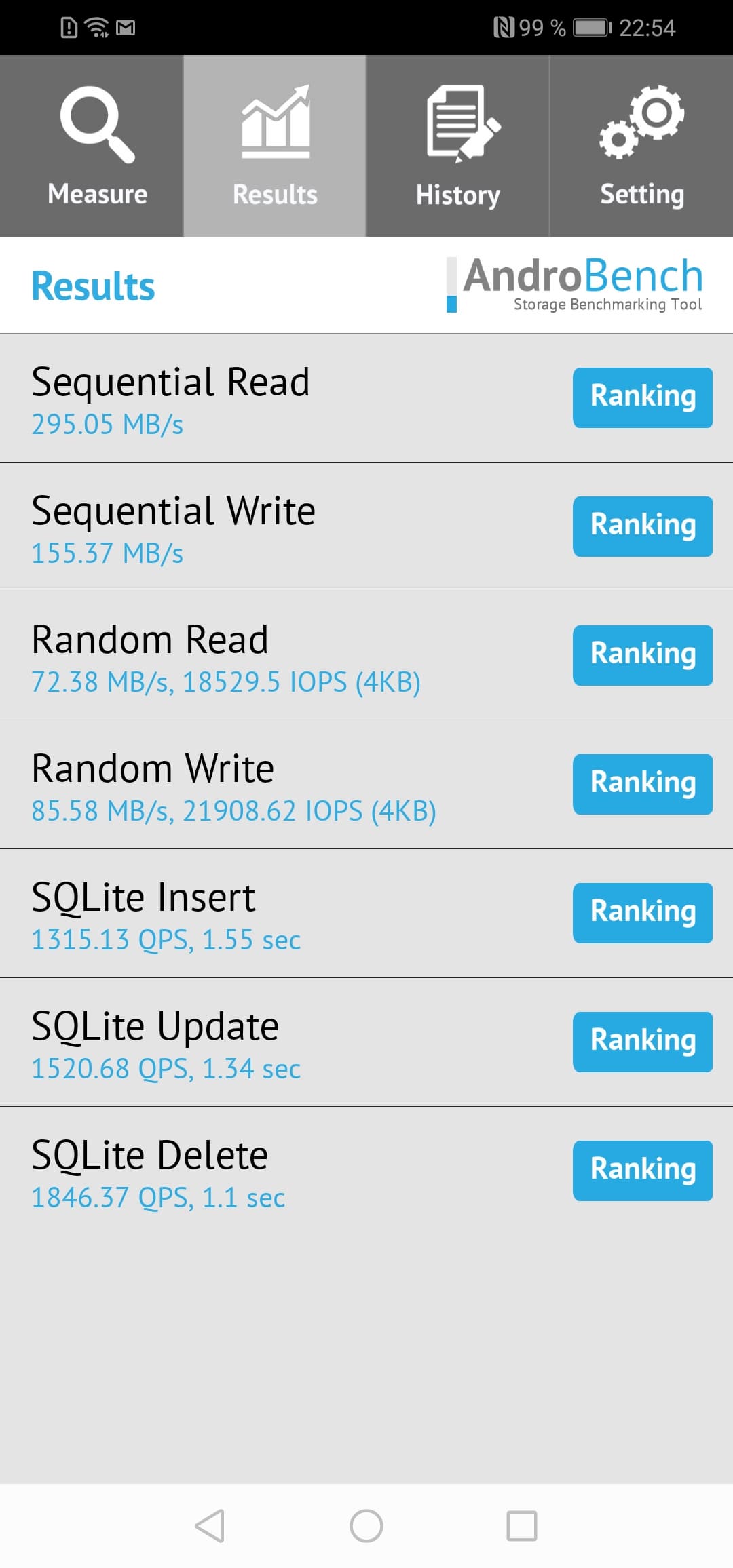 Объем оперативной памяти составляет 6 ГБ, объем хранилища — 128 ГБ (из них свободно около 108 ГБ). Поддерживается установка карты памяти microSD, а также подключение внешних устройств к порту USB Type-C в режиме USB OTG.
