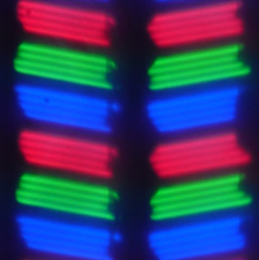 В данном смартфоне используется матрица типа IPS. Микрофотографии демонстрируют типичную для IPS структуру субпикселей: