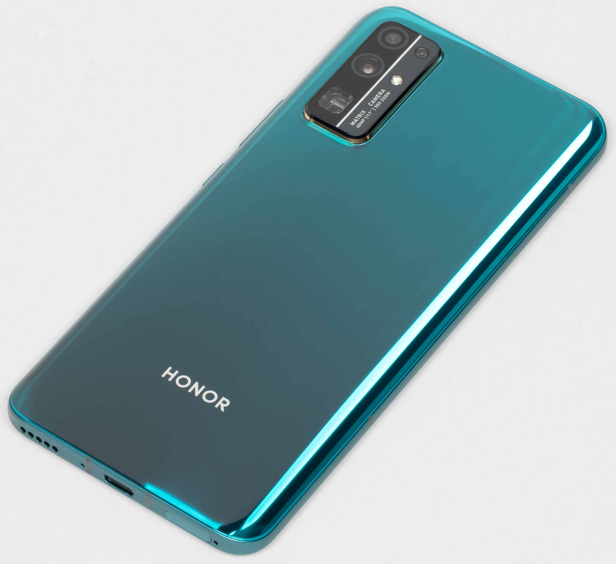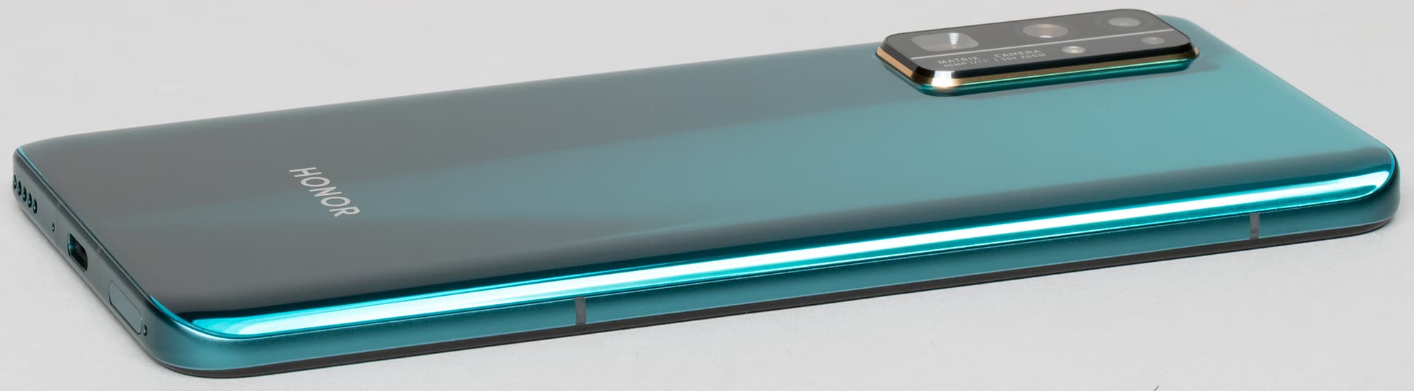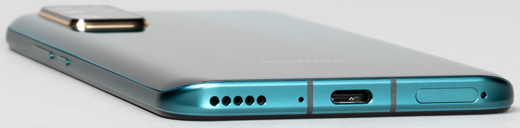 В нижнем торце установлены динамик, разговорный микрофон и разъем USB Type-C. От 3,5-миллиметрового аудиовыхода для проводных наушников в этой модели отказались, и этим аппарат отличается от того же Honor 30S, у которого имеется стандартный выход на миниджек. Минус ли это — зависит от конкретного пользователя, его наушников и желания всегда носить с собой переходник.