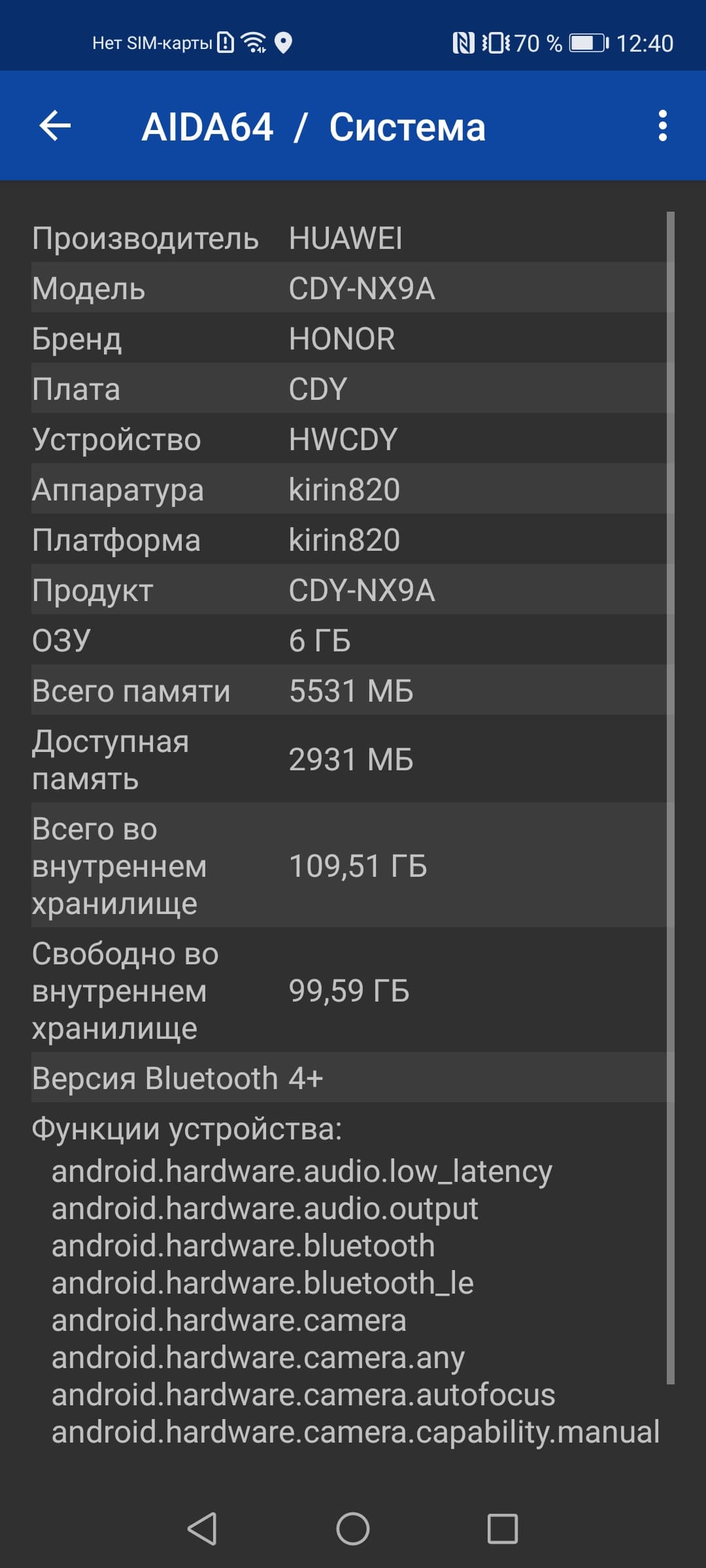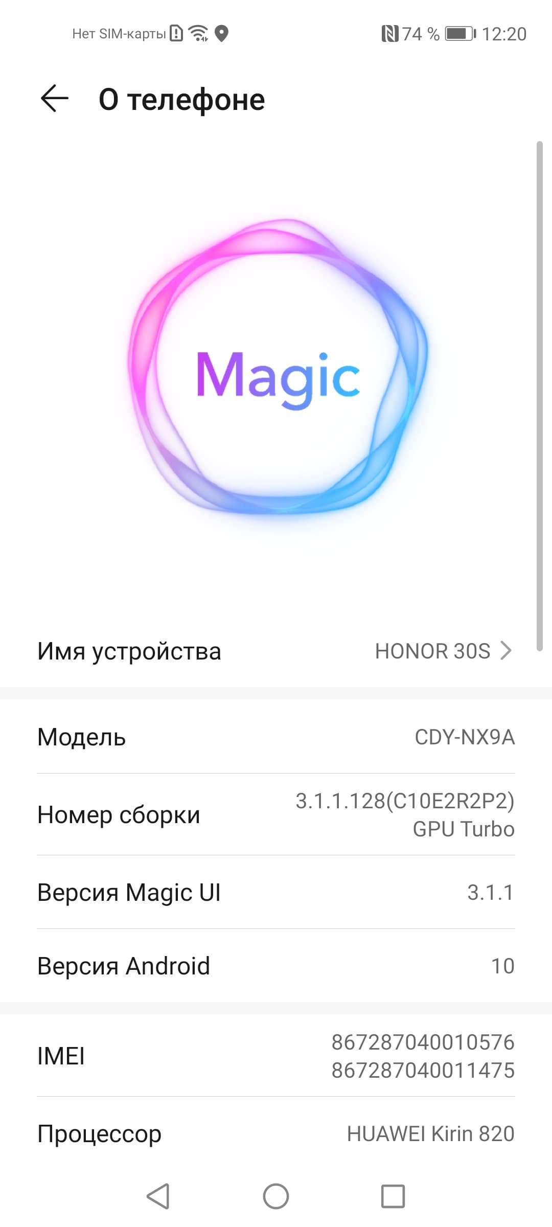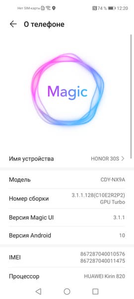 - Операционная система Android 10, MagicUI 3.1.1, без Google Play Services