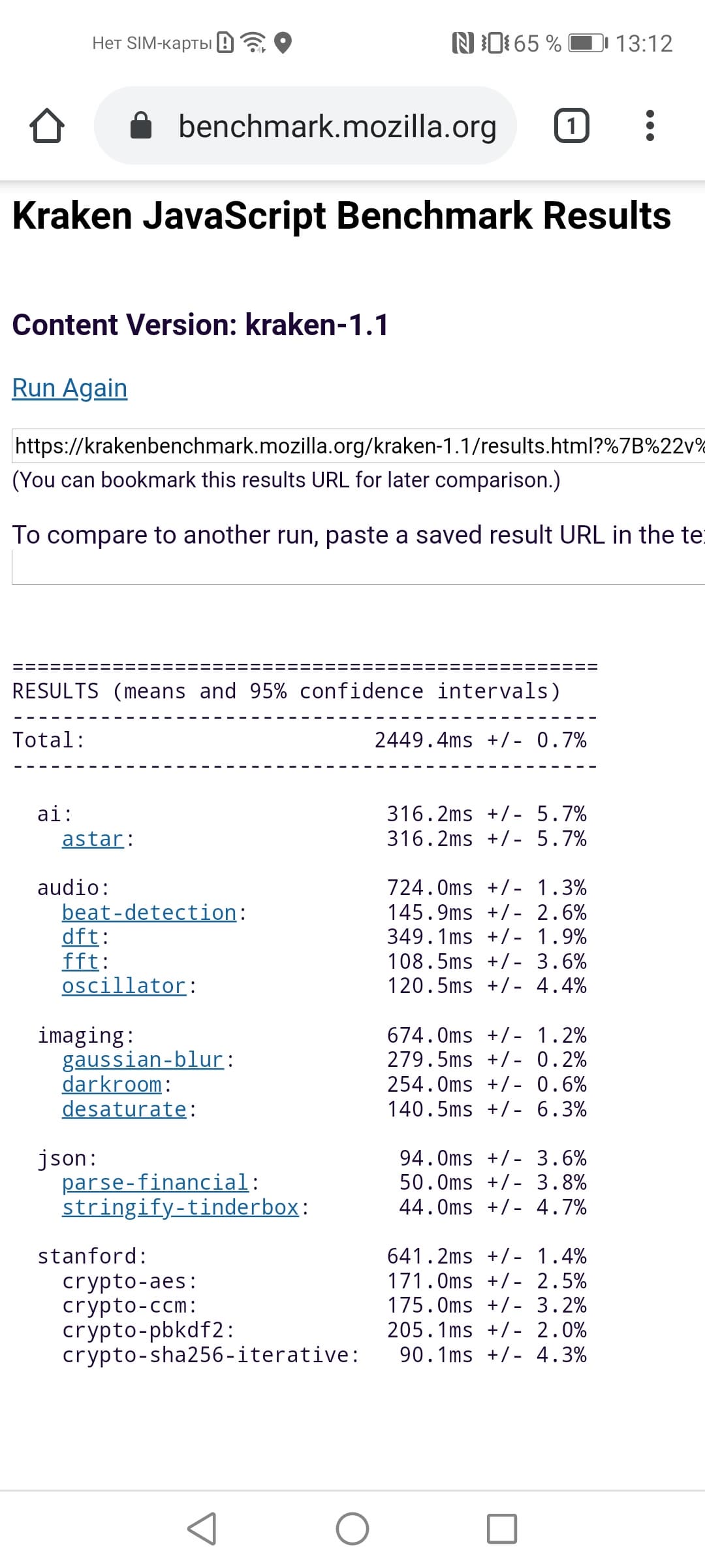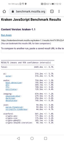 | Mozilla Kraken (мс, меньше — лучше) | 2449 | 2921 | 2692 | 3269 | 2708 |