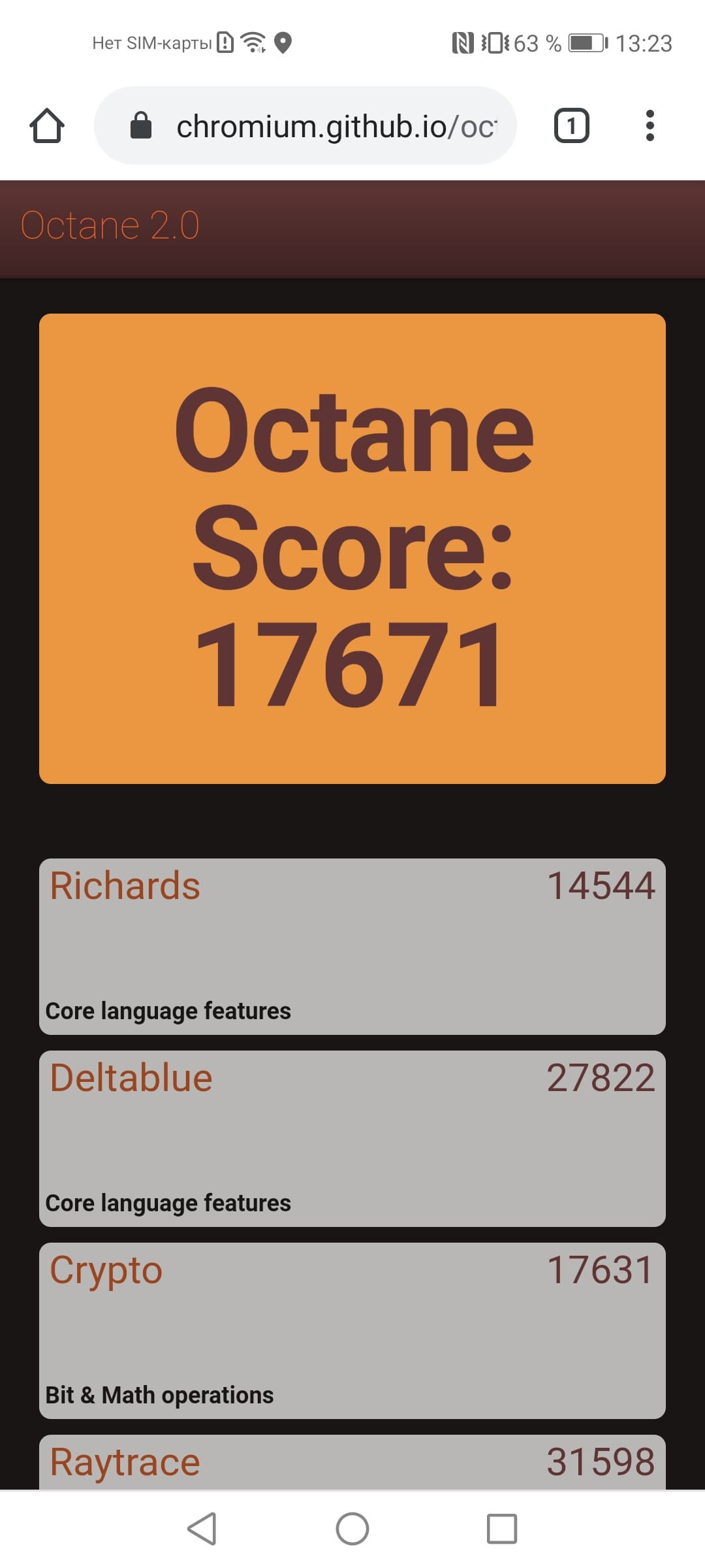 | Google Octane 2 (больше — лучше) | 17671 | 11969 | 18443 | 14246 | 15357 |