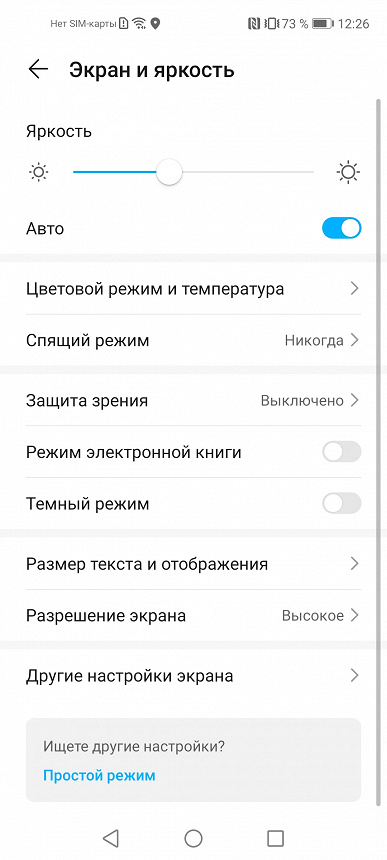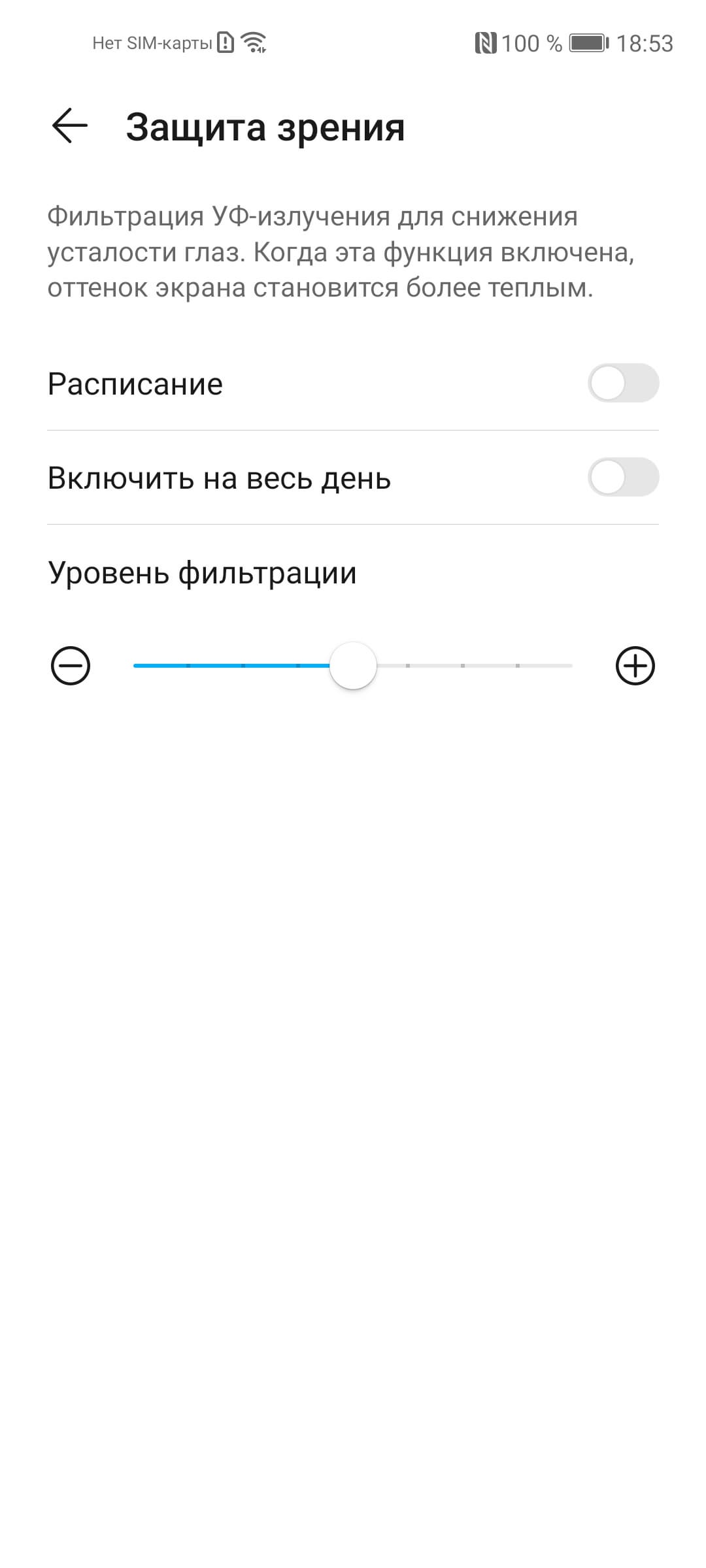 Присутствует модная настройка, позволяющая снизить интенсивность синей компоненты.