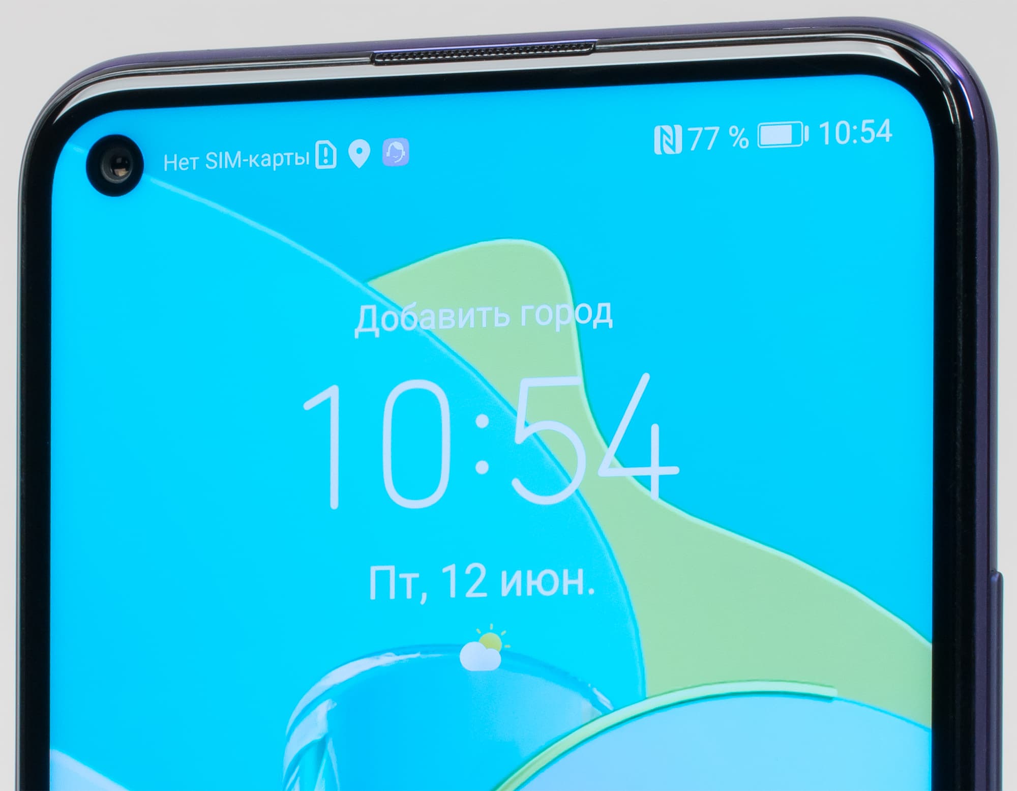 Для одиночной фронтальной камеры прямо в матрице дисплея проделано небольшое круглое отверстие, которое совершенно не бросается в глаза и не портит внешнего вида. Но если оно все равно мозолит вам глаза, можно скрыть вырез в черной полосе, это настраивается. А вот почему у смартфона отсутствует такой полезный элемент, как светодиодный индикатор событий, остается загадкой.