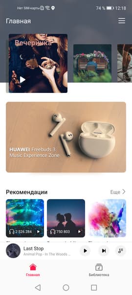 В смартфоне нет стереодинамиков. И в наушниках, и через динамик звучание на среднем уровне. Приятно, кстати, что сохранили 3,5-миллиметровый аудиовыход. Для наушников нет поддержки Dolby Atmos, поскольку установлена собственная система настроек Histen. Для беспроводных наушников нет поддержки кодеков aptX. Любопытно, что штатный фирменный аудиоплеер не произведет ни звука, пока не авторизуешься со своей учетной записью Huawei, поскольку он одновременно является еще и магазином аудиоматериалов.