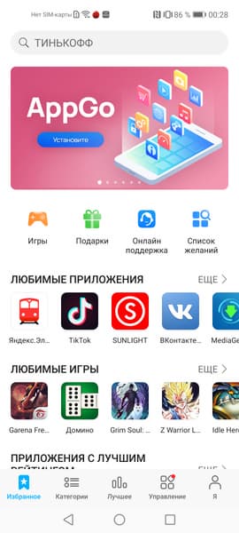 Facebook, WhatsApp и Instagram придется устанавливать из APK, но после этого они работают исправно, ни на что не жалуются. Для WhatsApp в AppGallery есть карточка-ссылка, отправляющая на сайт разработчиков, где можно скачать APK. Кроме того, существует приложение AppGo — каталог программ с указанием ссылок, по которым можно скачать APK-файлы. Присутствуют в AppGallery и приложения-клиенты крупнейших банков.