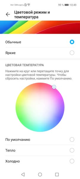 В этом устройстве есть возможность скорректировать цветовой баланс с помощью регулировки оттенка на цветовом круге или просто выбором одного из трех предустановленных профилей.