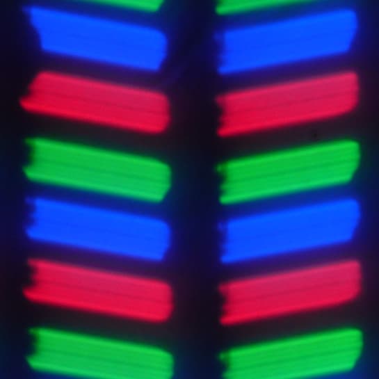 В данном смартфоне используется матрица типа IPS. Микрофотографии демонстрируют типичную для IPS структуру субпикселей: