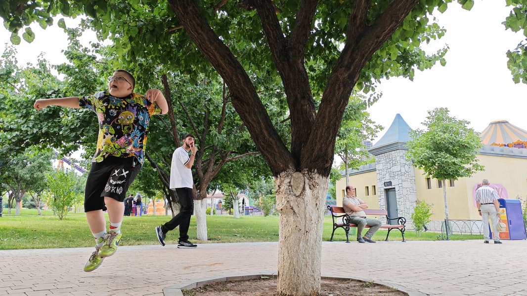 Инструменты AI-редактирования позволяют улучшить фотографии уже после съемки: «AI-ластик» удаляет нежелательные объекты, а отдельный режим «Удаление прохожих с AI» сам определяет лишних прохожих и убирает их. Результат, конечно, годится лишь для развлечений, на серьезную ретушь он никак не тянет: детализация фотографии падает, а на месте удаленных прохожих возникают всевозможные артефакты.